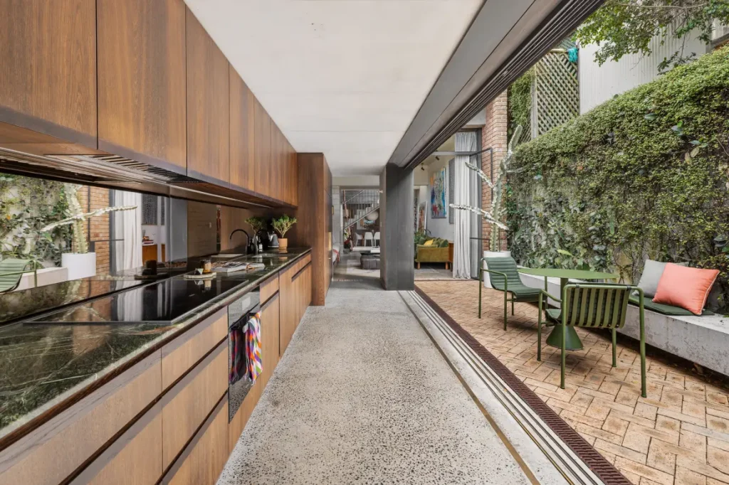 Designed by the award-winning Welsh + Major architects, this 5m-wide masterpiece somehow feels vast, open, and full of light. How? A retractable glass roof, clever zoning, and a flawless blend of old and new. It’s so impressive that it won the 2017 Australian Institute of Architects National Award, proving that small sites can still deliver big design moments.